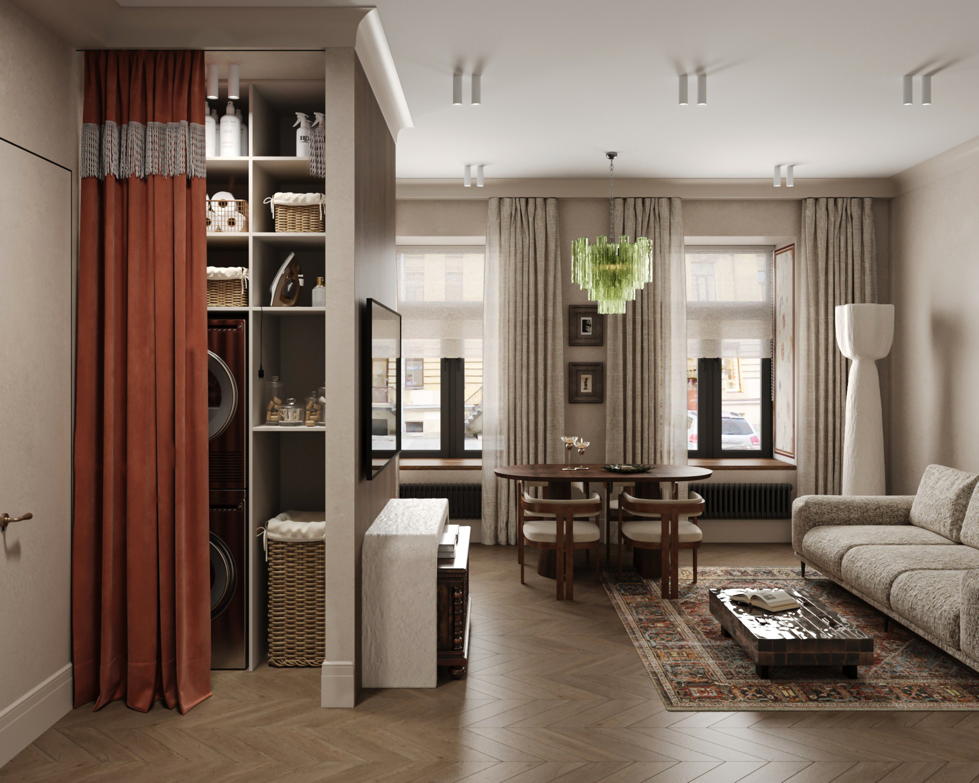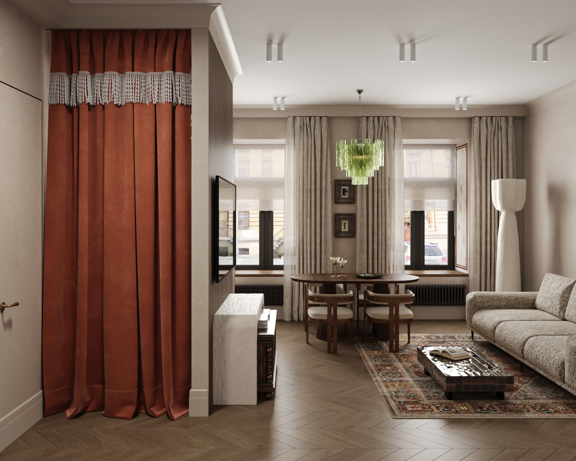 Квартира на улице Маяковского — частный интерьер, собранный вокруг предметов, фактур и текстиля. Пространство проектировалось для заказчицы, чья жизнь тесно связана с Италией и работой с тканями, — это задало тон всему проекту: внимание к деталям, к качеству вещей и к ощущению среды, в которой хочется находиться.